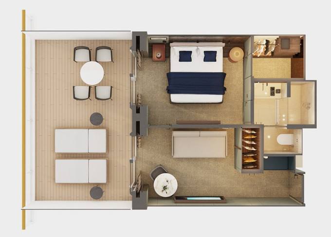 SI - Suite s veľkým balkónom na korme 24 m² / balkón 19 m². 9. paluba vzadu. Max 2 osoby. Výhody Suite 10 808 € 5 404 € za osobu