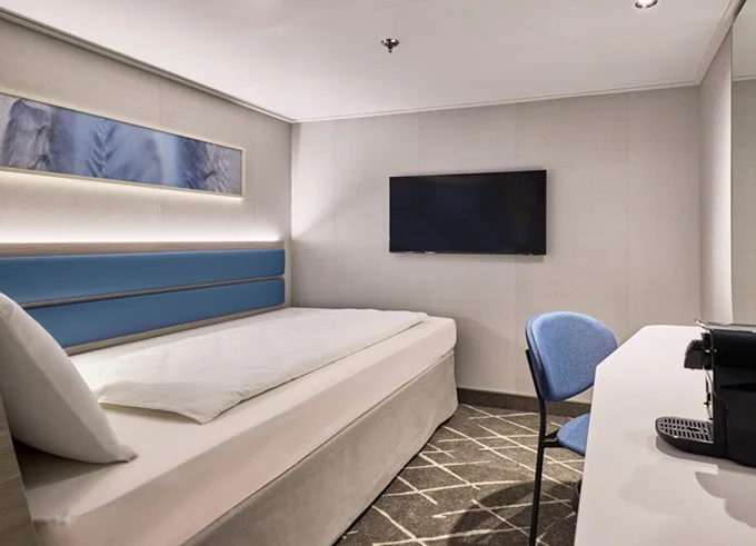 EZBO - Kajuta s balkónom Single 11 m² + balkón 5 m². 11. paluba. Max 1 osoba. Cenový model PLUS. 1 979 € 1 979 € za osobu
